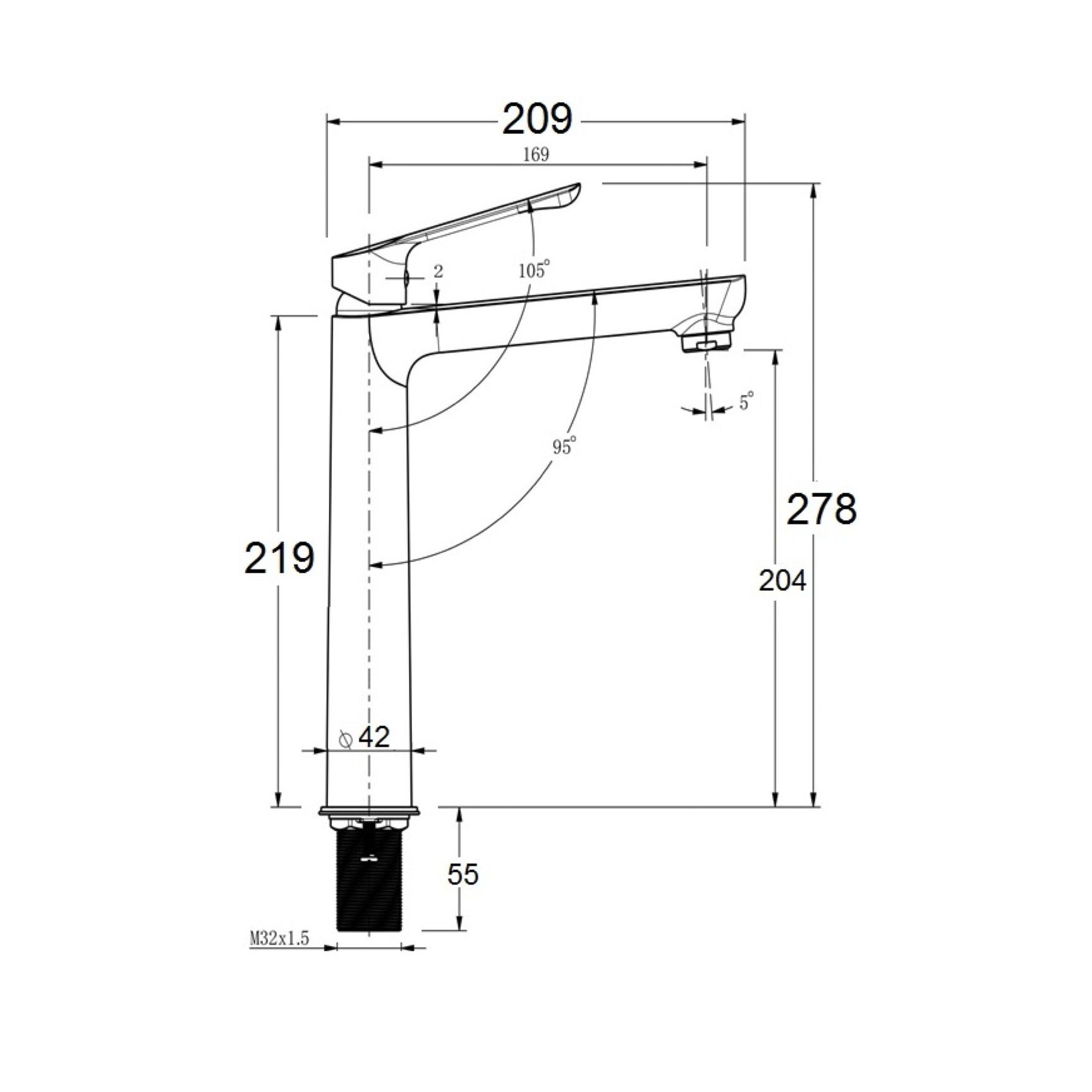 ขนาด: 209 x ⍉42 x 278 mm