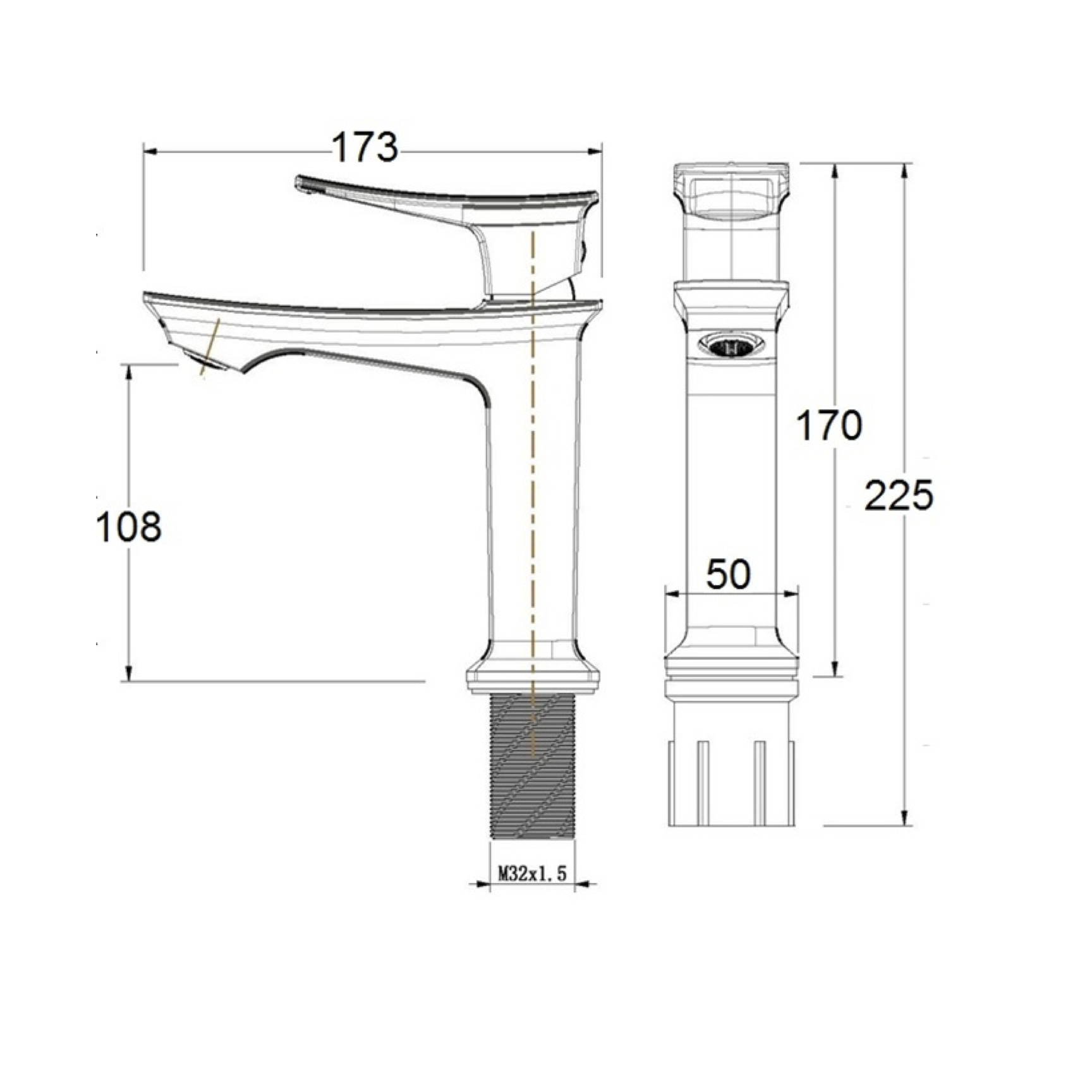 ขนาด: 173 x ⍉ 50 x 170 mm