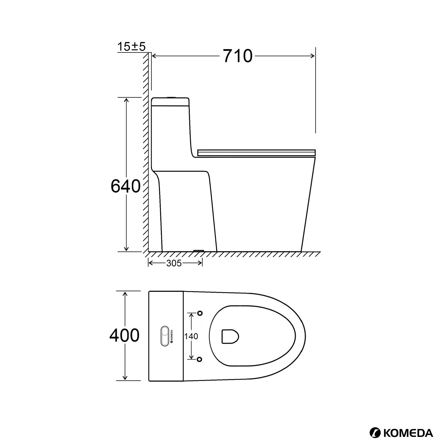 ระยะกึ่งกลางท่อน้ำทิ้งถึงผนัง 305 mm.
